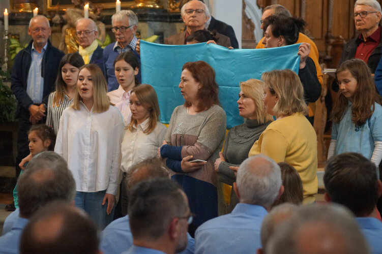 Der Männerchor Gunzwil war einer der Chöre, die für den Frieden gesungen haben.Nach den besinnlichen Worten von Pastoralleiterin Theres Küng stimmte Mariia Tokac ein besinnliches Lied an: «Bosche velykyj jdeynyj», ein gesungenes Gebet für die Ukraine. Sie stand in ihrer ukrainischen Tracht alleine vorne im Chor, füllte aber mit ihrer wunderschönen Stimme die ganze Kirche aus. Es war ganz still. Und dann wurde es sehr emotional. Seit ein paar Tagen sind Menschen aus der Ukraine im Don…
