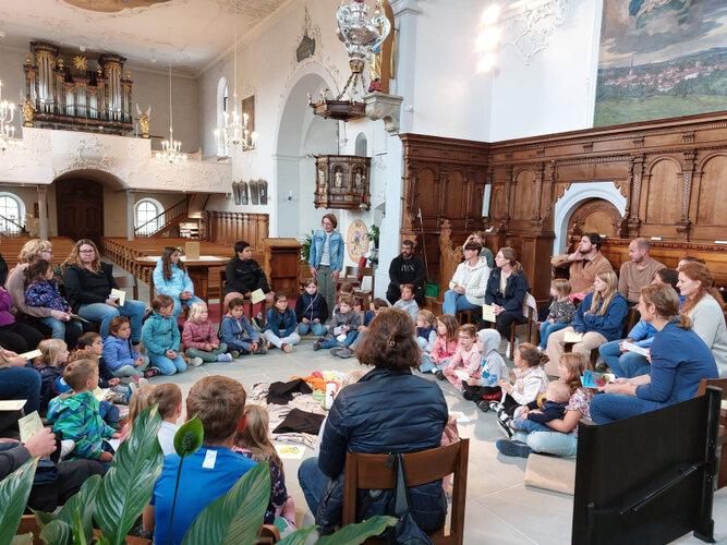 Eine grosse Kinderschar hat das Kirchweihfest in Beromünster nicht nur im Flecken mit Rösslispiel und Zuckerwatte gefeiert, sondern auch in der Pfarrkirche St. Stephan mit Singen, Beten und einer sinnreichen Geschichte.