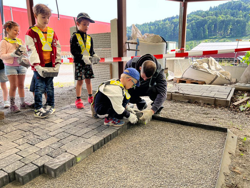 Um dies und noch mehr herauszufinden, durften die Kinder viele grossartige Highlights erleben. So zum Beispiel der Besuch der Sebastian Müller AG. Dort durften die Kinder einen interessanten Film schauen, um zu erfahren, was alles aus Steinen hergestellt wird. Weiter konnten sie sehen, wie Beton entsteht und sie konnten sogar selbst Verbundsteine für einen Platz verlegen. Nach dieser strengen Arbeit wurden alle Kinder mit einem feinen Znüni verwöhnt und bekamen eine Becherlupe geschenkt.