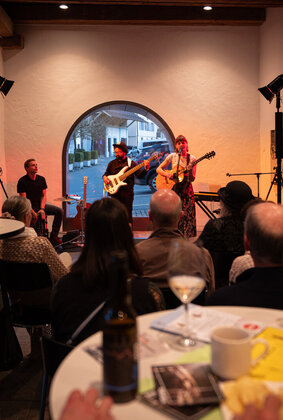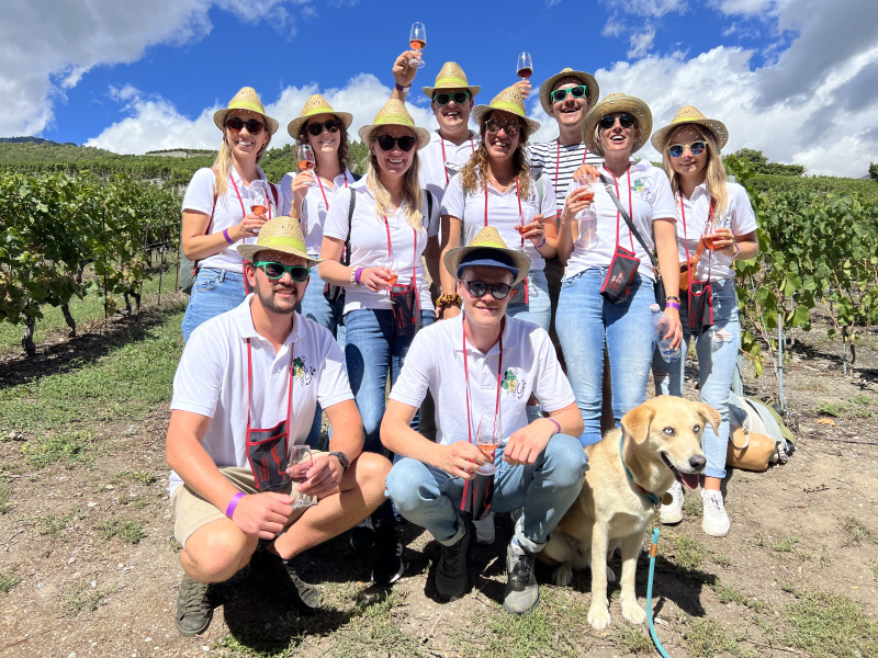 Am Samstag stand der eigentliche Höhenpunkt der Jubiläumsreise auf dem Programm. Nach dem Frühstück machten sich die zehn Wysswii-Freunde auf den Weg in die Kellerei Cave du Rhodan Mounir Weine in Salgesch. Denn dort absolvierte der Reiseleiter Elias Hecht seine Ausbildung zum Weintechnologen in den Jahren 2015 bis 2017. Die Familie Mounir empfing uns herzlich mit dem ersten Apéro und Elias machte anschliessend eine spannende Führung durch den Betrieb. Die Wysswiifraktion konnte direkt zuschauen, wie die frisch abgelesenen Trauben aus den Walliser Rebbergen verarbeitet werden. Es war eindrücklich zu sehen, mit welcher Leidenschaft die Familie arbeitet, gehört der Betrieb doch zu den schweizweit 150 besten Winzer nach Gault Millau.
