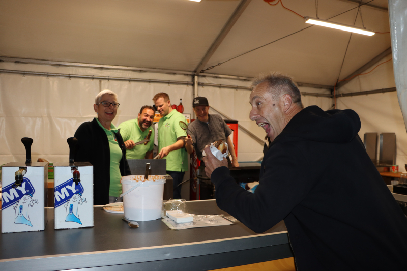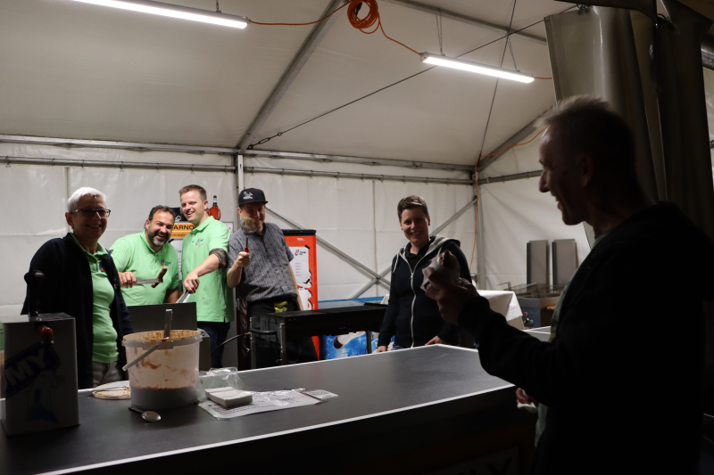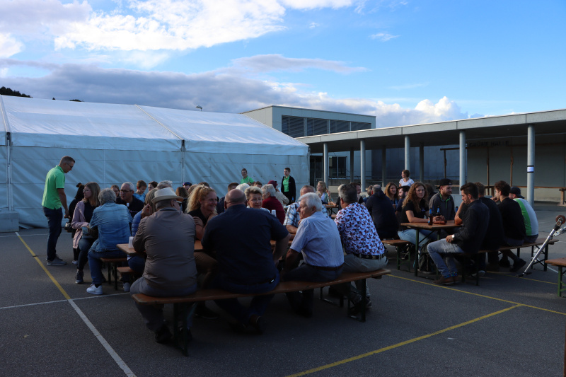 Nun, das ist schon lange her. Heute wird, wenns sein darf, gemeinsam organisiert, musiziert und vielleicht auch etwas politisiert. Am Freitagabend war aber vorerst Gemütlichkeit und Stimmung angesagt. Ab 17 Uhr war die Festwirtschaft auf dem Schulhausareal offen und füllte sich zusehends mit hungrigen und durstigen Gästen. DJ Mark Stone sorgte im bunten Scheinwerferlicht zunehmend für Stimmung, und das bereits, als der Abend noch jung war. Die Crew am Grill war zwar noch nicht ganz ausgelastet, aber das Fest hat ja auch erst begonnen.