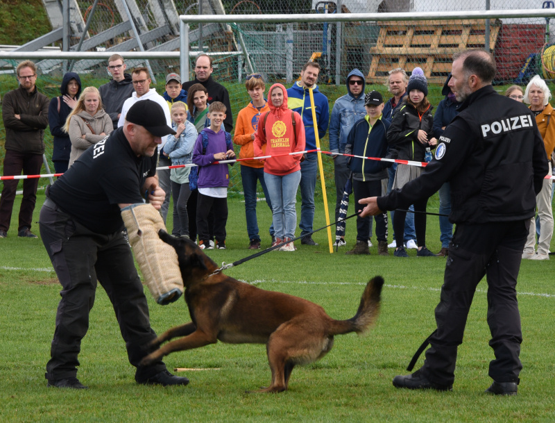 Auch Polizeihunde waren an der Gwärb im Einsatz. Die Sondergruppe Hundeführer der Luzerner Polizei waren eigens für eine Präsentation vor Ort. Die Kraft, die Schnelligkeit und die Agilität der tadellos dressierten belgischen Schäferhunde und des Cocker Spaniel, die von ihren Führern in ihren Tätigkeiten als Schutzhunde oder Spürhunde präsentiert wurden, machte die Gänge in den Zelten vorübergehend etwas lichter.