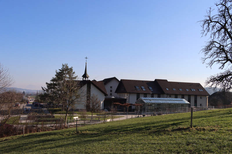 Eine ruhige Atmosphäre empfängt einen im Eingangsbereich der Räumlichkeiten von Hof Rickenbach. Es duftet nach Kaffee, die Zimmer sind fröhlich geschmückt und die Sekretärin am Empfang begrüsst einen freundlich. Hier in dem Gebäude aus den 80er-Jahren, einst für eine Klostergemeinschaft erbaut und jetzt als Institution für Demenzbetroffene genutzt, fühlt man sich sofort angenehm aufgenommen.