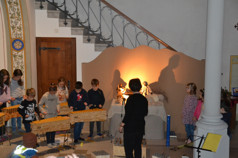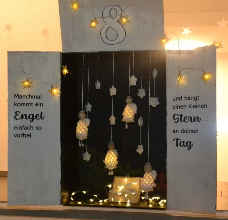 Jeden Tag wurde das Geheimnis eines Fensters offenbart. Am Montag scharten sich sehr viele Kinder und Erwachsene um das Fenster neun bei der Kirche, das die drei Sakristaninnen Elisabeth Imfeld, Edith Stirnimann und Erika Estermann präsentierten, das Transparentbild mit einem Bethlehemhirten und seinem Lieblingsschaf. Die Musikschulleiterin Barbara Menberg musizierte mit den Grundschulkindern und den Xylofonspielerinnen in der warmen Kirche. Engagiert aktiv vermochten die jungen Musikerinnen adventliche Wärme zu erzeugen. Sehnsüchtig kam das Lied «Mer wartid, mer wartid bis es Wiehnacht isch. Es brönned scho Cherzli, wils Advänt jetz isch ...» Dieses Lied, Text und Melodie, hat sich die Zweitklässlerin Flurina ausgedacht und mithilfe vom Mami und Frau Menberg aufgeschrieben. Anschliessend offerierte das Sakristaninnenteam warme Getränke und etwas zum Knabbern für alle.