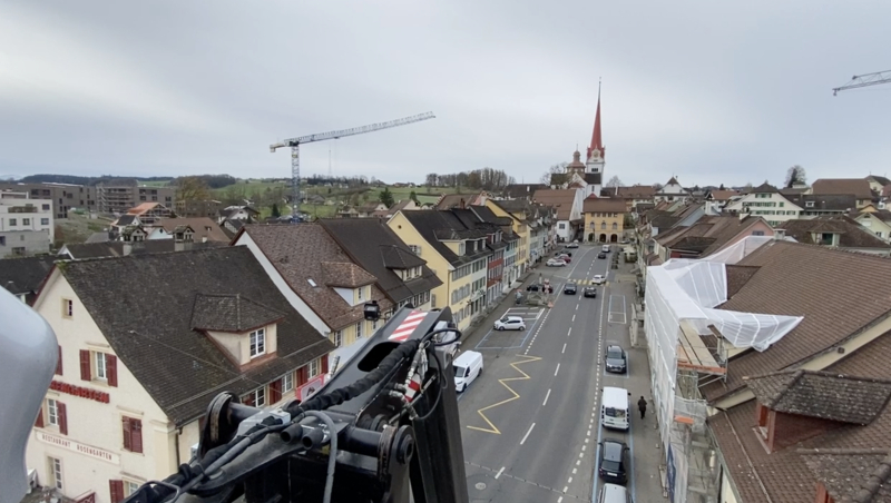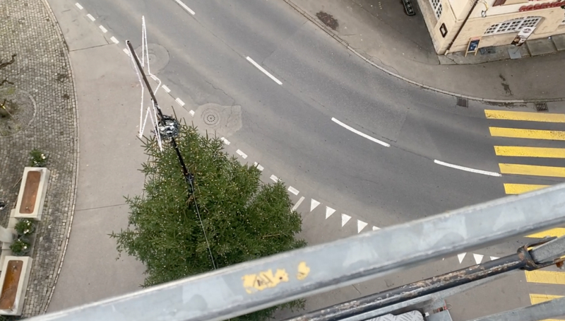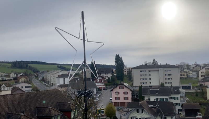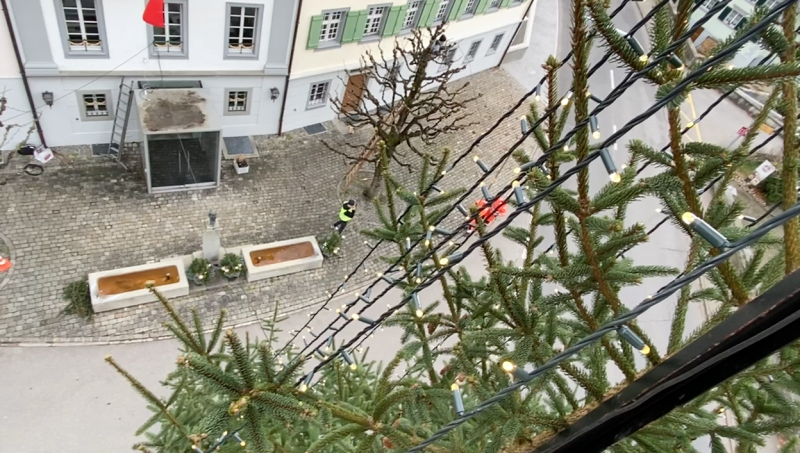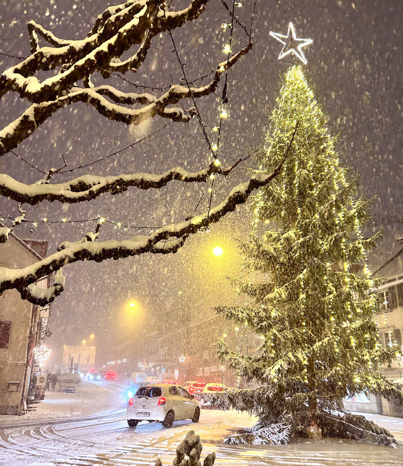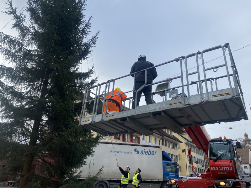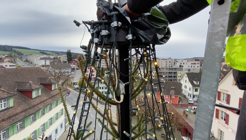 Der Christbaum im Flecken Beromünster wurde vergangene Woche mit bestem Timing just vor dem Wintereinbruch installiert. Vormittags wurden noch hoch im Wipfel die letzten Stecker gesteckt, und nachmittags legten sich schon die ersten Schneeflocken auf die Äste des in tausend LED-Lichtern erstrahlenden, 15 Meter hohen Weihnachtsbaums. Perfekt. Als wäre es so bestellt gewesen.