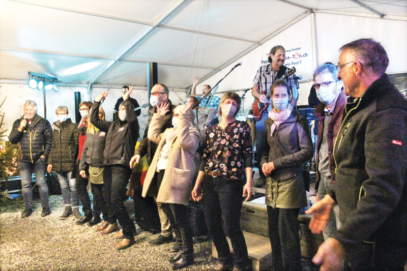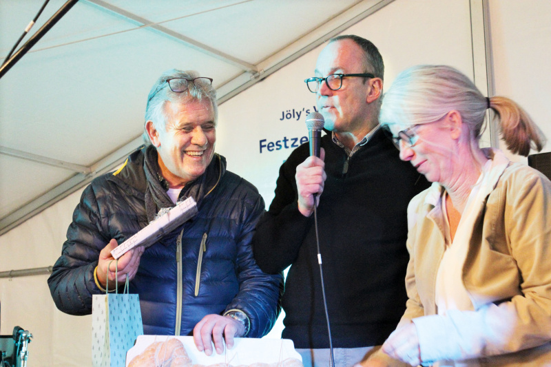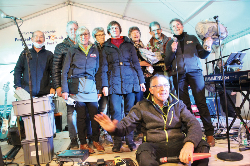 Felix Mathias sagte gegenüber unserer Zeitung: «Wir überlegten uns vor sechs Jahren, was in der Region fehlt und was wir den verschiedenen Gästegruppen bei der Organisation von Festivitäten abnehmen können, damit sie sich vom Organisieren dispensieren können.» Die bisherigen Verantwortlichen übergaben den grossen gebackenen Schlüssel symbolisch und wirkungsvoll. Ursi Matthias sagte: «Wir wünschen dem neuen Pächterpaar Kirsten und Thomas Wiederkehr alles Gute, einen erfolgreichen Start ab dem 12. Januar 2022 und viel Elan in der Weiterentwicklung des fünfjährigen Betriebskonzeptes.» Das Ehepaar freut sich schon heute auf viele Besucher im Huus74. Vor dem und im Festzelt gabs feinen «Härdöpfelsalat» und verschiedene Würste, sympathisch und live zubereitet vom «Hausgärtner» Roli Sandmeier aus Seengen, der «schönsten Seetaler Gemeinde» wie er unbescheiden meinte und mit seinen Jokes vielen schon beim Check-in ein Lächeln auf die Lippen zauberte. Roli avancierte zum Personalsprecher und stieg auch selber auf die Bühne, eloquent und humorvoll.