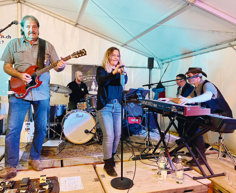 Zuerst spielten «Wyna West» gross auf: Die Country-Rock-Band um Andy Sager (Gitarre und Harp) sowie die charismatische Tanja Hunziker (Leadsängerin) überzeugte von A bis Z mit Spielfreude und Publikumsnähe. Da muss sich auch «Züri West» warm anziehen: Der Funke ging ab dem ersten Song auf das Publikum über. Marc Urech (Keyboard) erinnerte an Steve Winwood, eines seiner Vorbilder. Die 1996 gegründete Band begeisterte mit abwechslungsreichem Repertoire. Andy Sager: «Alle Bandmitglieder gehen seriösen Berufen nach, zum Beispiel Servicetechniker Aufzüge.» Sager war schon bei den legendären Blues- und Metalbands «Methusalem» und «Master Pflaster» dabei, die auch in der NZZ rezensiert wurden. Am 11. Februar 2022 sind Wyna West, die eigene Line Dancer haben, in Lenzburg im «Baronessa» gebucht für einen nächsten Gig.