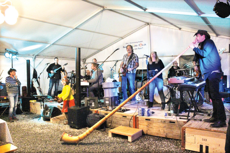 Dann gaben «Has im Gras» richtig Gas: Ruedi Weber vom Trolerhof in Menziken (Rhythmus-Gitarre, Leadgesang und Bluesharp) kündigte die Band locker an als «AHV-positiv». Die Mundartstücke stammen oft aus seiner Feder. Drei Musiklehrer sind in ihren Reihen, die anderen sind leidenschaftliche Amateure. Sie stiegen fulminant ein mit Latin-Groove von Carlos Santana, sehr nahe an den Vorbildern, nur unterbrochen von einem Stromausfall, der aber irgendwie doch wieder passte zu diesen Zeiten. Beim Konzert wurde Just Hulst verabschiedet als Schlagzeuger. Rolf Richner ist der Neue an den Drums. Ruedi Weber sagte unserer Zeitung vor dem Konzert: «Wir spielen heute ein spezielles Set, mehr Partysound als sonst. Es soll abgehen.» Da hatte er nicht zuviel versprochen… Beim Heuler «All Right Now» von «Free» von 1970 war die Stimmung riesig. Bei einzelnen Songs baute er auch «Huus74» geschickt ein und verstärkte so den Eindruck eines einmaligen Erlebnisses.