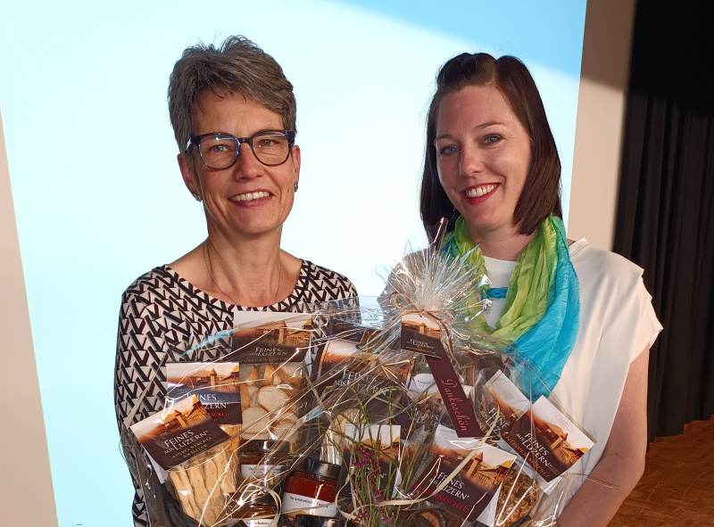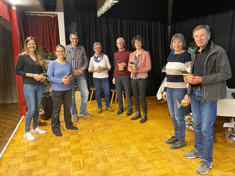 Susanne Messerli, die neue theologische Begleitung, gedachte der 12 verstorbenen Mitglieder in den Jahren 2020 und 2021. Ilona Walker verliess den Vorstand nach 6 Jahren sehr kompetenter Mitarbeit im Ressort Familien. Rita Rüttimann und Fabienne Leutwiler waren viele Jahre als Revisorinnen tätig. Käthi Wolf (SCHIRM), Claude Esch (FerienSpass), Ruth Erni (Alterskommission) und Janine Brunner (Unterstützung Ressort Familien), wurden unter grossem Applaus und mit einem Geschenk verabschiedet.