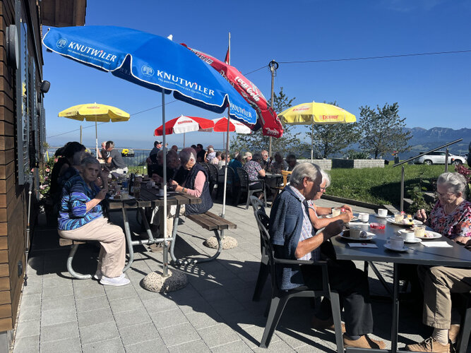 Eine hervorragende Aussicht etwas unter dem Napfgipfel bei schönstem Wetter durften die Ausflügler erwarten. Das war ihnen allerdings noch nicht bekannt und wie immer eine Überraschung, als sich die rekordgrosse Teilnehmerschar am letzten Mittwochmittag auf dem alten Schulhausplatz versammelte.