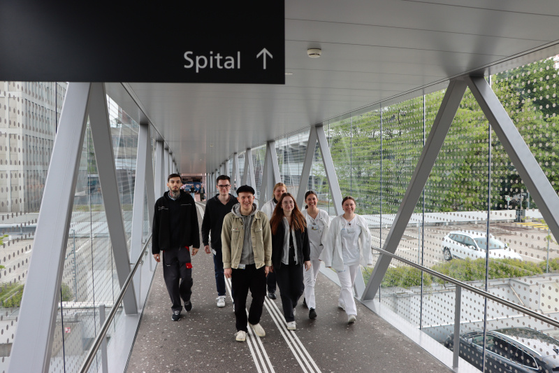 Nebst den vielen Herausforderungen stehen für die sieben Lernenden jedoch die Highlights ihrer Berufe ganz klar im Vordergrund. «Wir haben viel Abwechslung. Als ICT-Fachmann kann man hier sogar in die Operationssäle!» erklärt Yannick seine Begeisterung für die Arbeit am LUKS. «Wo kann man das sonst schon?» Marco doppelt nach: «Es ist mega spannend hier! Von Patientenabrechnungen über Chirurgie bis zum Lieferdienst sehe ich in so viele verschiedene Bereiche hinein. So versteht man immer mehr, wie der ganze Apparat funktioniert!» «Ja, hier dürfen wir in alle Berufe hineinschauen und auch mitgehen, von der Physio bis zum Rettungsdienst!», sagt auch Yasmine begeistert. Für die Fachpersonen Gesundheit Mia und Sarah ist klar: «Es ist nie langweilig! Von Medizin über Chirurgie zu Palliativ gibt es total unterschiedliche Anforderungen und wir haben mit so vielen Menschen und Charakteren zu tun, das ist mega spannend!» Auch das Team ist für sie von grosser Bedeutung. «Es macht Freude, mit guten Leuten zusammenzuarbeiten!»