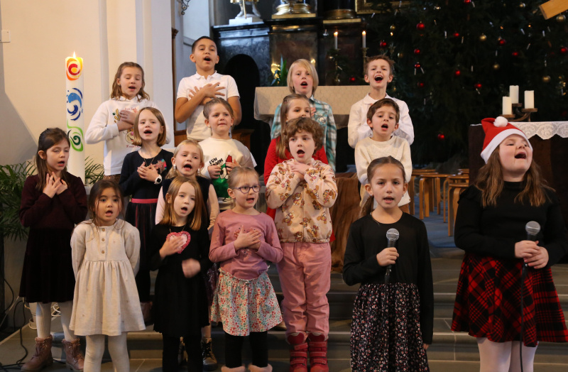 Das «Stille Nacht» auf der Orgel begleitet von Annemarie Kaufmann vervollständigte die knapp stündige herzwärmende und gedankenanregende Weihnachtskindermette. Pfarreileiter Erich Hausheer spendete den Segen Gottes mit dem Wunsch, dass der Weihnachtsfriede der Krippe in die Familien strahlen möge. Auch das Friedenslicht sei von Pfadfindern, diesmal leider nicht aus dem kriegsgeplagten Bethlehem, sondern nur aus Österreich in die ganze Welt verteilt worden. Viele Familien trugen dieses emotional aufgeladene Friedenslicht mit nach Hause. Hoffentlich strahlt es mit den vielen Gebeten um Frieden in der ganzen Welt zurück in die Geburtsstadt Jesu, in die Ukraine und auch nach Syrien. Darum bat auch der Chor mit seinem groovigen Schlusslied «This little light of mine».