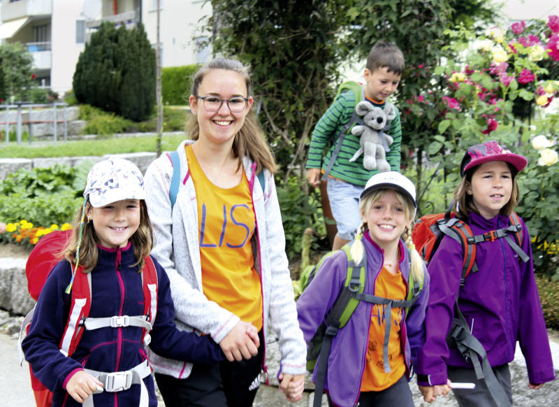 Gleichzeitig findet auch das Tageslager für 10- bis 14-jährige Teenies statt. Nach dem Morgenritual geht’s zu Fuss zum Lagerplatz im Diegenstal.