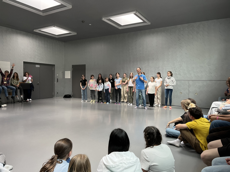 Es war der erste Tag und ich war sehr aufgeregt. Wir mussten um 7 Uhr aufstehen, damit wir den Zug erwischten. Meine Mutter kam auch mit, um uns zu unterstützen. Als wir dort ankamen, haben wir gleich zu Mittag gegessen – es gab Käsesandwiches – und danach durften wir einen Workshop machen zum Thema Bühnenpräsenz.