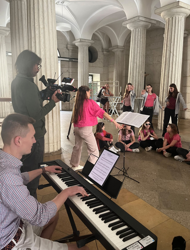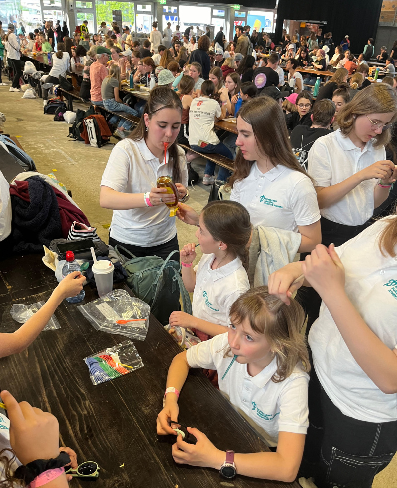 Ein bisschen später trafen wir uns wieder, haben ein paar Bewegungsspiele gemacht und sind dann zum Soundcheck gegangen. Danach haben wir zusammen zu Abend gegessen. Wir waren alle so aufgeregt, denn an diesem Abend war der grösste Auftritt, den wir je hatten. Wir konnten in der grossen Festival Halle vor 2000 Menschen singen!