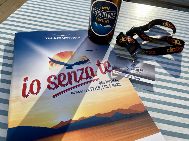 Diese Woche fand die Premiere des Musicals «Io senza te» auf der Seebühne Thun statt. Nachdem ich schon die letzte Produktion «Mamma Mia» genossen hatte und der letzte Music-Corner um Nostalgie drehte, wollte ich mir dies nicht entgehen lassen, die zeitlosen Kompositionen von Peter Reber im Berner Oberland zu geniessen.