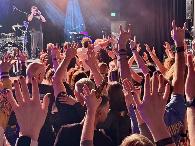Beim Gig dabei war auch Joe Bachmann, der das letzte Jahr noch DJ bei der Rock Night in Hochdorf war und unter anderem oft in der Schüür in Luzern auflegt. Er gleicht Steve Lee zum Verwechseln und ist seit August 2024 an der Seite von Brigitte Voss, der Witwe von Steve Lee, die auch an der Rock Night war. Joe Bachmann sagte an der Bar gegenüber dem Michelsämter: «Ich bin bis zur 4. Klasse in Beromünster zur Schule gegangen, seither lebe ich in Emmenbrücke. Ich war Vorturner beim STV Beromünster, war mal der Einzige, der den Salto konnte auf der Bühne (lacht). In der Jungwacht war ich mit Kardinal Kurt Koch und mit dem ehemaligen Propst von Beromünster, Josef Wolf. Unser Religionslehrer meinte, wir sollten alle drei Priester werden. Bei den anderen beiden hat es geklappt, während ich eher dem Teufel ab dem Karren gefallen bin» (lacht schelmisch). Er war schon bei Auftritten der Pink-Floyd Coverband «Black Diamond» und dreimal bei Nazareth DJ. Auch Pädu Ziswiler von der Band «Hang Loose» war unter den Fans. Ein richtiges Rockertreffen halt...