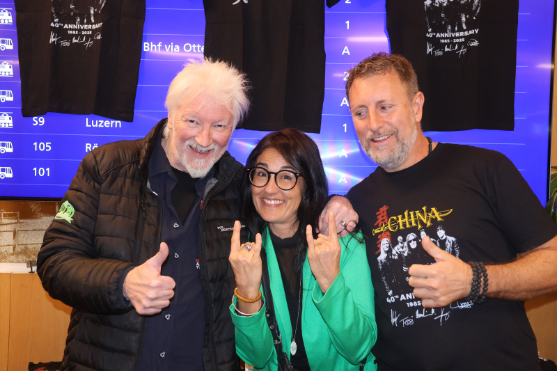 Dann war die Reihe an China: Werner «Hardy» Hartmeier (vocals), Claudio Matteo (vocals, guitar), Freddy (Laurence) Scherer (guitar), Marc Lynn (bass) und Ralph «Tosi» Tosoni (drums). Scherer und Lynn haben es auch zu Gotthard und damit in die allerhöchste Hardrock-Liga geschafft, spielen jedoch auch noch bei China mit. Ihre Hits «In The Middle Of The Night», «Sing In The Sky», «Wild Jealousy» und «Shout It Out» bleiben bei Classic-Rock Fans bis heute unvergessen. Die neueren Songs der jetzigen Formation, «Love Someone» und «Ran Out Of Love», wurden von der Rock-Gemeinde ebenfalls frenetisch gefeiert. Nach einer Stunde sagte ein Kollege: «Ein sanfterer Song würde dem Set jetzt guttun». Es war wie eine Bestellung beim Universum: China spielten die wunderbare Ballade «So Long». Viele waren extrem begeistert, dass nach all den Bon Jovi-Krachern die Stimmung konstant hoch blieb bis zur Zugabe von China, «Proud Mary» von John Fogerty, bekannt in den Versionen von CCR und von Tina Turner. «Wir spielen sonst fast nur eigenes Material, doch für diesen Rockstampfer machen wir gerne eine Ausnahme», meinte Bassist Marc Lynn, der bei einer Ansage erwähnte, dass er ganz in der Nähe gewohnt habe. Beim Bier an der Bar konnte ich ihn darauf ansprechen: «Ja, ich habe von 2007 bis 2015 ein Haus in Hildisrieden gehabt, war aber viel unterwegs. Jetzt wohne ich in Neuenkirch, habe aber noch Wohnsitze in Lugano und in Deutschland». Ein richtiges Rockerleben halt...