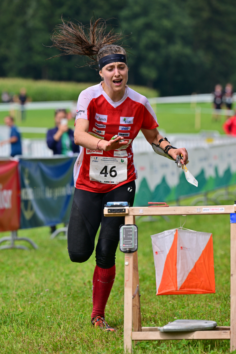 Mit viel Ruhe und der Gewissheit über die schnellen Beine, startete Müller fulminant und war schon nach wenigen Posten in Führung. Sie lag bei allen Zwischenzeiten vor ihren Konkurrentinnen. Bis zur Zuschauerpassage lief sie ein perfektes Rennen und erst mit der Nachricht, dass sie in Führung liegt, passierten ihr einige kleinere Unsauberkeiten auf der Schlussschlaufe. Trotzdem lief sie mit einem Vorsprung von über 3 ½ Minuten auf die beiden finnischen Läuferinnen ins Ziel und durfte sich als neue Studenten-Weltmeisterin Gold umhängen lassen.