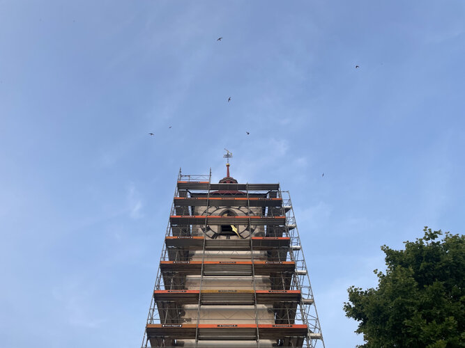 Kirchturm in Neudorf – Mauersegler verzögern Renovation