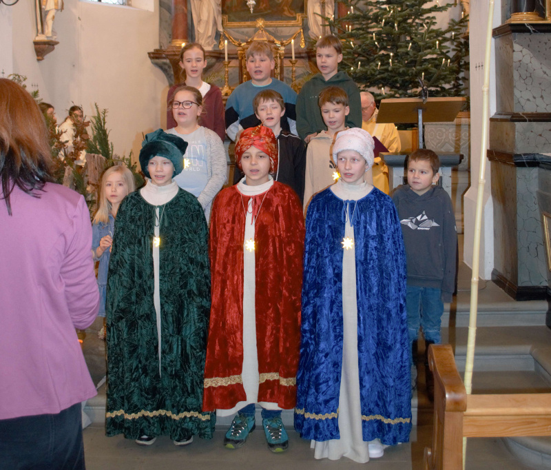 Gleich zum Start des Gottesdienstes durften die vielen Kirchenbesucher die drei festlich gekleideten Könige bestaunen, welche mit der Unterstützung von acht Schülerinnen und Schülern der Schule Schwarzenbach mit ihrem Gesang die Kirchenbesucher begrüssten und mitnahmen auf die Reise der drei Könige. Ein grosses Dankeschön an Yvonne Fankhauser, welche die Königsgewänder der Pfarrei Schwarzenbach geschenkt hat. Auch ein Dankeschön geht an Evelyne Kronenberger (Klassenlehrperson 3. – 6. Kl.), sie hat mit den Kindern die Lieder eingeübt.