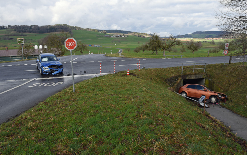 Ein Autofahrer fuhr am Montag, 19. Februar 2024, zirka, 10.10 Uhr), auf der Gründistrasse in Gunzwil vom Gebiet Chommle in Richtung Waldi. Er beabsichtigte die Kantonsstrasse zu überqueren. Gleichzeitig fuhr eine Autofahrerin auf der Kantonsstrasse in Richtung Beromünster. Dabei kam es zur Kollision zwischen den beiden Fahrzeugen. Das Auto der Frau geriet durch die Kollision von der Strasse, prallte gegen einen Wegweiser und kam vor einer Unterführung zum Stillstand. Verletzt wurde beim Unfall niemand. Der Sachschaden beläuft sich auf zirka 60 000 Franken.