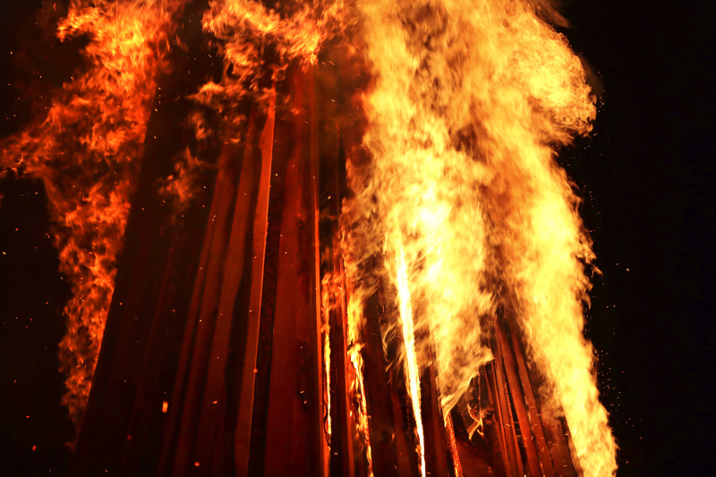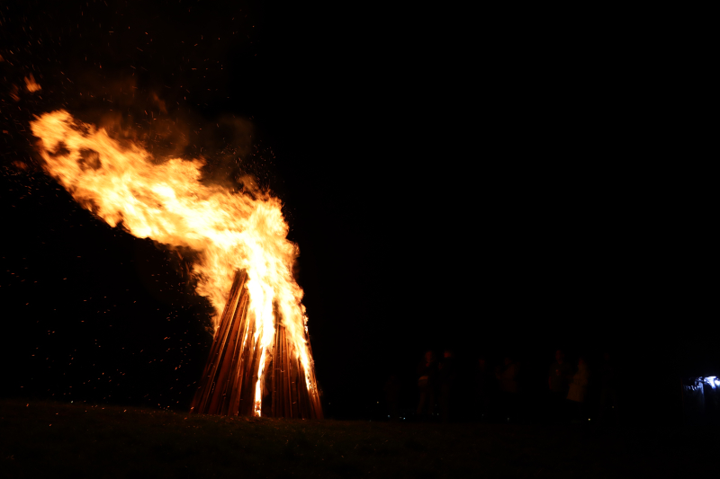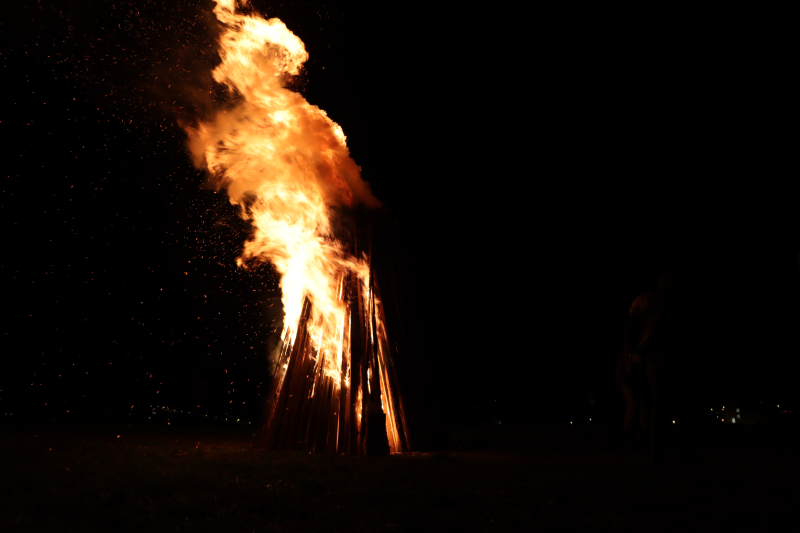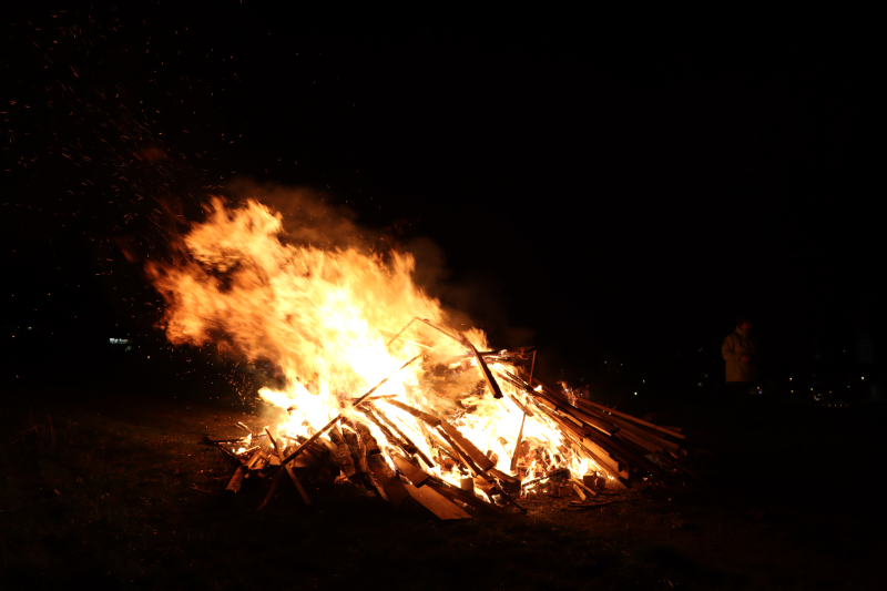 Der Stapel gerät nun richtig in Brand. Es wird heiss. Die Frauen und Männer lachen, plaudern. Das Gregorifeuer 2024 macht Freude! Vor allem jenen, die dort sind. Von Weitem sieht man auf dem Hügel der Schanz bloss einen rötlich flackernden Punkt.