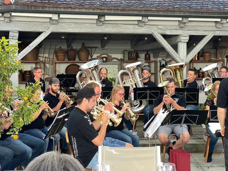 Zum Abschluss des ersten Halbjahres lud die MG Schwarzenbach an den vergangenen beiden Freitagabenden zu zwei unterhaltsamen Sommerkonzerten ein. Dabei präsentierten die Musikantinnen und Musikanten ihr musikalisches Programm nicht wie gewohnt auf dem Schulhausareal in Schwarzenbach, sondern liessen ihren Brassband-Sound auf den Gartenterrassen vom Wirtshaus zum Herlisberg und vom Restaurant Trolerhof erklingen.