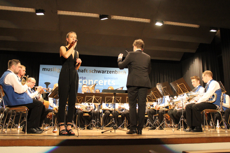 Dirigent Louis Schibli, der nun ein Masterstudium im Bereich Biomedical Engineering startet, gab nach fünf Jahren seinen Abschied. Er wurde an der GV 2017 gewählt und tritt per GV 2022 zurück. Er wurde herzlich verdankt; Louis hat grossen Anteil an der Weiterentwicklung des Sounds und der ganzen Musikgesellschaft. Seine Nachfolge wird demnächst bestimmt. Die Solistin Chiara Stocker aus Beromünster begeisterte durch warmen, präzisen Gesang und fügte sich vortrefflich in den Gesamteindruck ein. Sie wagte sich mit der MG Schwarzenbach an anspruchsvolle Stücke: «Think» von keiner Geringeren als «The Queen of Soul» Aretha Franklin sowie «Let it Go» und als Zugabe «The Rose» von Bette Midler, drei ganz unterschiedliche Kompositionen, toll interpretiert. Auch das lüpfige Stück «Urnerbodä Kafi» kam sehr gut an, obwohl naturgemäss Handorgel und Bassgeige fehlten. Natürlich durfte der obligate Marsch am Schluss nicht fehlen, diesmal «The Police Academy March».