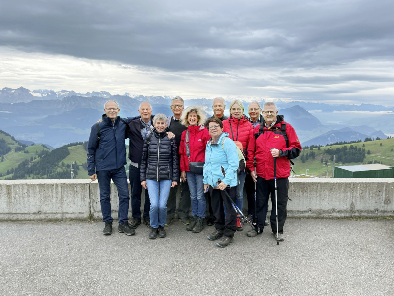 «Das trockene, wenn auch windige Wetter erlaubte uns einen Abstieg zu Fuss nach Kaltbad. Angekommen beim Gratalp-Stubli, mit bestbekannten Wirtsleuten wie Susanne, Zabli und Rita, genossen wir nach einem weiteren Apéro im Garten ein überaus feines Mittagessen im warmen Stubli drin», erzählen sie. «Wir waren eine echt tolle Gruppe, lachten, erzählten und diskutierten. Hinzu kommt, dass die sehr persönliche Gastfreundschaft zu einzigartiger und unbezahlbarer Gemütlichkeit führte. Wau – war das wieder mal ein Erlebnis!» Die Stunden flogen dahin und so verliessen sie am späten Nachmittag Rigi-Kaltbad und begaben sich via Luftseilbahn auf den Heimweg.
