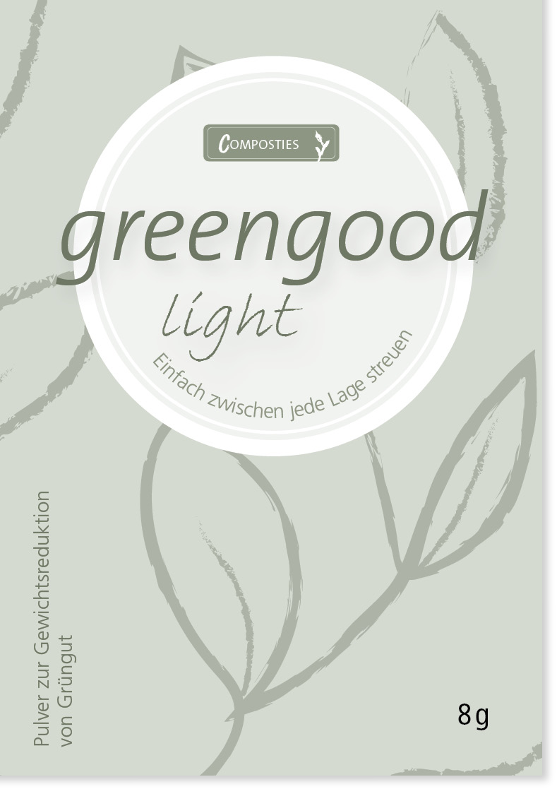 «Greengood light» besteht aus einer pulverartigen Substanz, die aus Papierabfällen gewonnen und mit Mikroorganismen angereichert wird. In Verbindung mit organischen Abfällen führt dieses dann zu einem chemischen Prozess: Die Zellstruktur löst sich auf und der Wasseranteil verflüchtigt sich. Das Angenehme daran: Es führt zu keinerlei Geruchsemissionen. Der Grüngutcontainer muss lediglich immer um einen Spalt breit offen bleiben. Einfach bei jeder Befüllung eine dünne Schicht «Greengood light» beimischen – und Ihr Container wird nie voll!