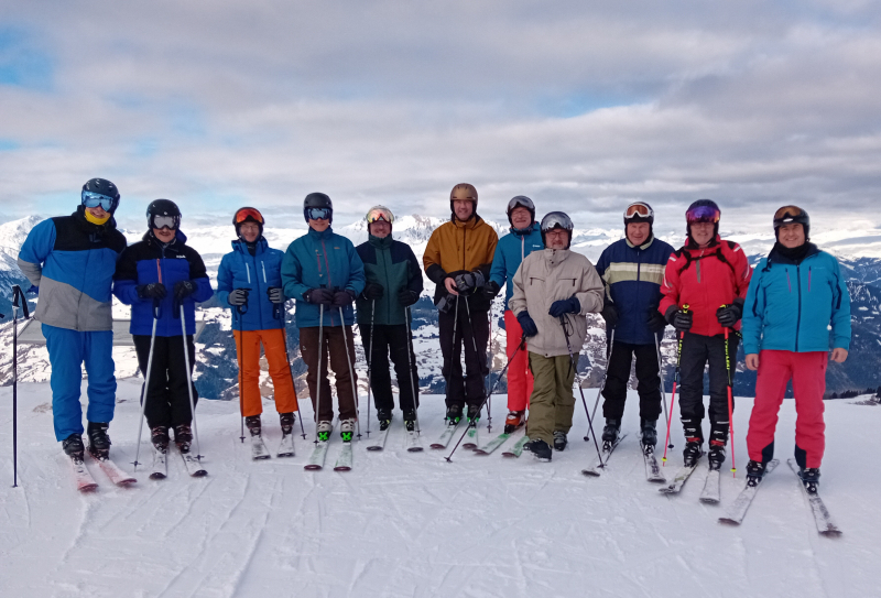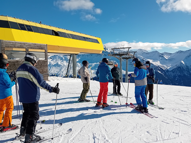 Kaum war das Begrüssungs-Apéro auf der Piste vorbereitet, strahlte auch schon die Sonne durch die Wolken und nach einigen Abfahrten bei besten Schnee- und Pistenverhältnissen zeigte sich der Himmel in strahlendem Blau. Nachdem unzählige lange oder kurze Schwünge in den Schnee gezogen wurden, traf man sich dann um 15 Uhr bei der Chillihütte, welche sich als «dia schärfscht schki-bar uf dr heid» betitelt. Bekanntschaften wurden geschlossen und kräftig mit den eingängigen Après-Ski-Hits mitgesungen und mitgetanzt. Äusserst knapp erreichte die Gruppe dann nach der Talabfahrt noch den Skibus, der sie zurück ins Dorfzentrum brachte. Während die einen in der benachbarten Skihütte sich ins enge Getümmel stürzten, machten sich die anderen schon für das Nachtessen im Hotel Danis bereit.