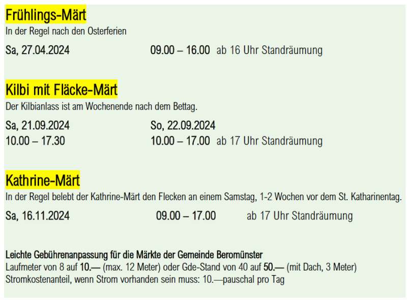 Ob bei den Marktfahrenden oder vor Ort – ich vermisse manchmal einfach ein konstruktiveres Miteinander, gegenseitiges Verständnis und ein Vorwärtsgehen, verbunden mit Neuerungen und Anpassungen. Bereitschaft und Engagement mit Taten zu Gunsten der Sache, zu Gunsten der Märkte im herrlichen Flecken.