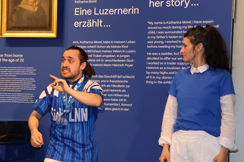 «Luzern erzählt...» beleuchtet spannende, oft vergessene Episoden aus 222 Jahren Kantonsgeschichte: von visionären, manchmal rebellischen Menschen über oft unbeachtete, aber faszinierende Tiere bis hin zu alltäglichen und dennoch beeindruckenden Landschaften. Die Ausstellung beginnt mit der Mediationsakte und Napoleons erstem Aufeinandertreffen mit den Luzernern. Später auf seinem Russlandfeldzug begegnet er der unerschrockenen Marketenderin Katharina Morel aus Luzern. Sie übernimmt die Rolle der Erzählerin und führt die Besucherinnen und Besucher durch die Ausstellung.