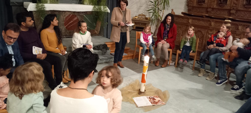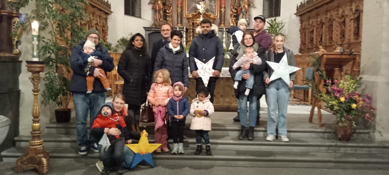 Die Gruppe sass gemeinsam im Chorraum, wo Pastoralraumleiterin Theres Küng die fröhliche Feier leitete, bei der die Kinder im Zentrum standen. Auch bei Jesus standen die Kinder im Zentrum und waren keine störende Randerscheinung, wie Katechetin Christa Wandeler-Wey lebendig erzählte. Jesus liess die Kinder zu sich kommen, segnete sie und stellte sie den Erwachsenen sogar als Vorbild im Glauben vor. Mit diesen Gedanken gingen alle Eltern mit ihren Kindern zum Taufstein, wo sie gesegnet wurden. Im Rahmen der Tauferinnerungsfeier erhielten die Eltern auch ihre wunderschön und individuell gestalteten Taufsterne zurück, die bisher in der Kirche zu bewundern waren.