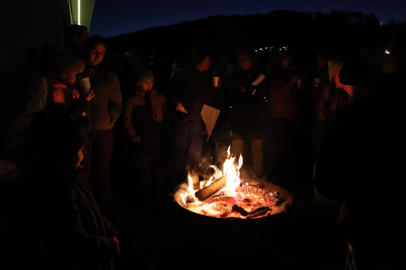 Doch das eine Lied, das heimlich ersehnte, ultimative Weihnachtslied – es kam nicht. Aber macht nichts. Es war ja auch noch nicht Weihnachten. Unter dem klaren Nachthimmel standen die Leute noch lange bei Punsch und Speckzopf am Feuer beisammen, während der Abendstern über dem Buttenberg mit dem Christbaum vor der Kirche und den vielen Laternen auf der Mauer um die Wette leuchtete.