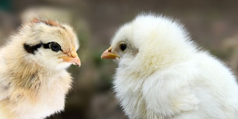 Die Küken gehören verschiedenen Rassen an und sehen bereits in jungem Alter sehr unterschiedlich aus: Barthühner-Bibeli haben wunderschöne, schwarzumrundete Augen, Jungtiere der Spitzhaubenhühner sind braun gemustert und die Küken des Schweizer Huhnes sind klassisch gelb.