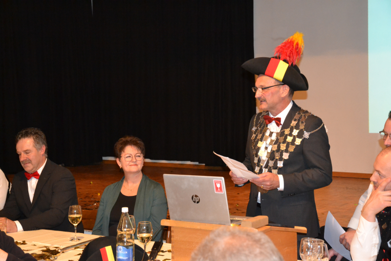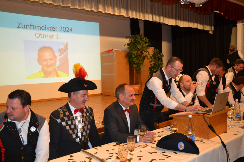 Im Saal des Roten Löwen begrüsste der Präsident Georg Rüttimann die grosse Zunftgesellschaft und hielt einen interessanten, bebilderten Rückblick auf das aktive Umzugsjahr 2023.