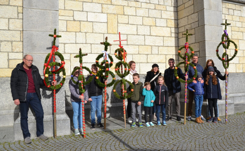 Am 2. April feierte die Pfarrei Hildisrieden in einem Familiengottesdienst den Palmsonntag. Der Gottesdienst begann auf dem Kirchenplatz wo die frohe Festbotschaft vorgetragen und die Palmstangen und -büschel gesegnet wurden.