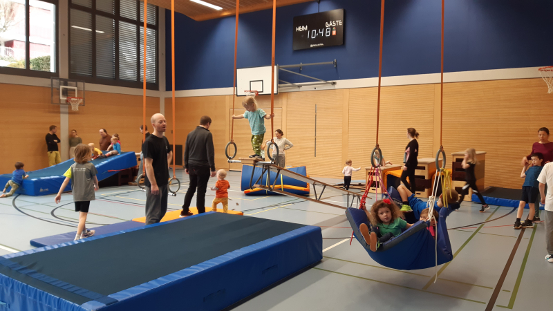 Der Sinn dieses Angebots ist, dass sich Kinder von 1 bis 7 Jahren zusammen mit ihren Eltern während der kalten Jahreszeit in der Turnhalle Hildisrieden bewegen können. Es stehen Parcours, Geräte und diverse Hilfsmittel zur Verfügung, welche frei genutzt werden können.