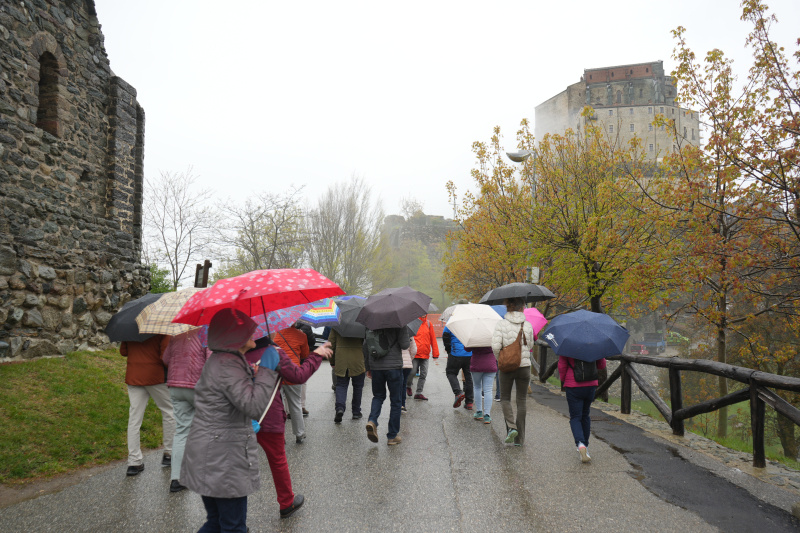 Der letzte Reisetag zeigte das schlechteste Wetter. Die Reisenden zückten ihre Schirme und Regenjacken und liessen sich nicht davon abhalten, noch die älteste Kirche im Programm zu besuchen: Die Sacra di San Michele ruht als Wahrzeichen des Piemonts auf dem Monte Pirchiriano über dem Susatal. Das Kloster fand seinen Anfang im Jahr 983 und zeigte sich in den Wolken als sehr mystischer Ort. Absolut sehenswert!