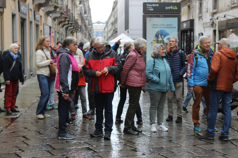 Mit zwei Ordensmitgliedern der Salesianer Don Boscos in der Gruppe war der Besuch von Valdocco – der Wirkungsstätte des heiligen Giovanni Bosco in Turin – am dritten Reisetag etwas ganz Besonderes. Pater Roggers Worte schenkten dem Lebenswerk Don Boscos und seinem unermüdlichen Engagement für Kinder und Jugendliche Bedeutung. Er führte im Anschluss durch Turins Altstadt zum grössten Freiluftmarkt Europas und zeigte die schöne Seite der Industriestadt. Dabei kam auch ein versteckter Ort zur Geltung: Wussten Sie, dass der heilige Giuseppe Benedetto Cottolengo dort im 19. Jahrhundert ein Spital gegründet hatte, das heute 15 000 arme Kranke kostenlos pflegt und sich dabei vollständig durch Spenden finanziert?