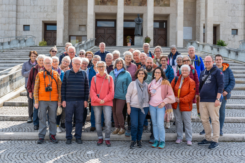 Voller Vorfreude versammelte sich am Donnerstagmorgen, 25. April, eine bunt durchmischte Gruppe aus dem Pastoralraum Michelsamt und Umgebung in Beromünster. Chauffeur Beat Jurt führte die insgesamt 37 Reisenden in einem schönen Estermann-Reisecar Richtung Süden. Ohne Stau ging es durch den Gotthard-Tunnel, und die Sonne erheiterte nach vielen regnerischen Tagen die Gemüter. Pater Bruno Oegerli bescherte der Gemeinschaft mit einem vielseitigen Quiz über Allgemeinwissen einen guten Zeitvertreib. Als ein Unfall mit spektakulärer Helikopter-Rettungsaktion vor Mailand für 45 Minuten Verspätung sorgte, waren die Reisenden – und insbesondere das Quiz-Siegerteam Brigitte Sidler und Franz Meier – sehr froh über die verteilten und zusätzlich gewonnenen Lindor-Kugeln. Umso schöner war die Ankunft in Becchi, südwestlich von Turin: Das Restaurant hatte mit dem Mittagessen gewartet und ein später Viergänger stillte den Hunger mehr als genug.