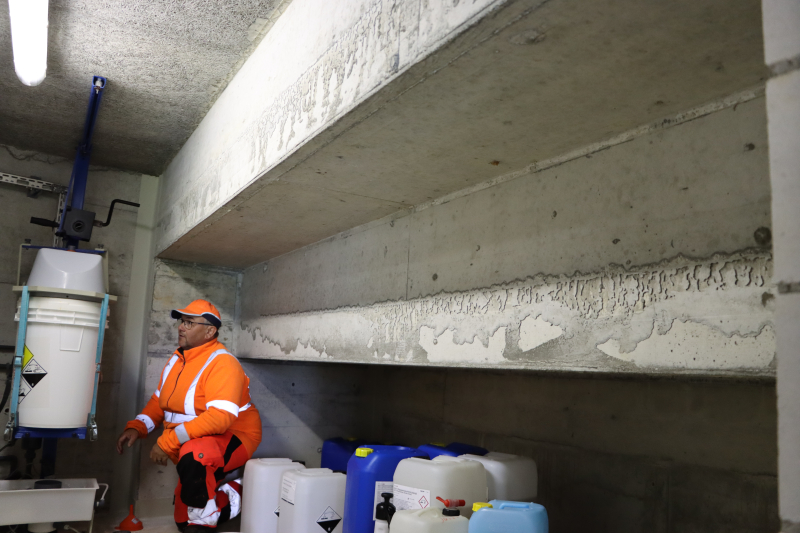 Bald räkeln sich wieder Badenixen auf der grossen Treppe aus Beton, kleine Knirpse klettern herum und Jungs hüpfen ins Wasser. Das ist aber nicht die einzige Funktion dieses Bauteils am hinteren Rand des Pools. Darunter verbirgt sich die Wasseraufbereitungsanlage, die das Planschen im Nass erst wirklich zum Spass macht und die Badegäste vor Keimen, Pilzen und anderen unerwünschten Verunreinigungen im Wasser schützt.