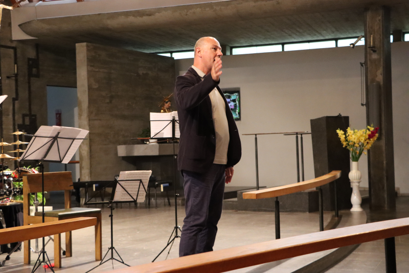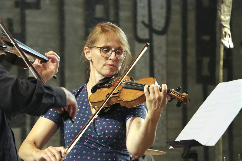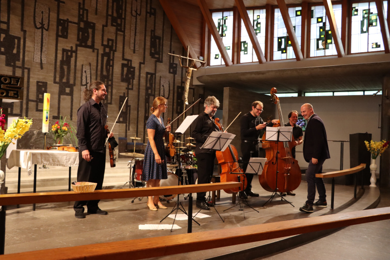 Instrumente und Notenständer sind im Chorraum bereit, in der Kirche ertönt noch das Raunen des plaudernden Publikums. Die Formation Klangcombi ist startklar für ihren Auftritt. Energiebündel Judith Müller, gespannt wie eine Saite, kanns kaum erwarten, loszulegen.