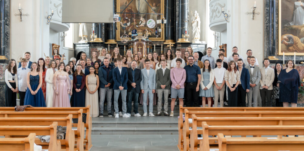 Mit dem Song «You'll never walk alone» aus dem Fussballstadion Liverpool zogen die Firmlinge mit ihren Pat:innen, Bischof Felix Gmür und den Firmbegleitenden am 25. Mai in die Pfarrkirche Rain ein.