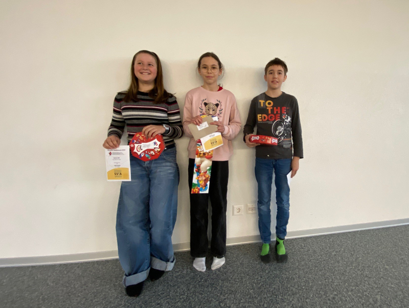 Kat. 5./6. Klasse: Margita G.. (144 Pkt./ 144 Pkt. möglich), Elias B., Samira N. (128 Pkt.)