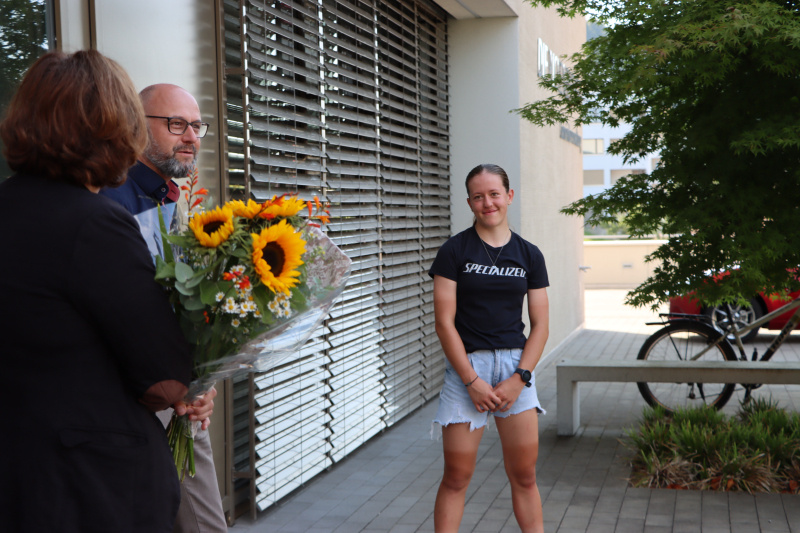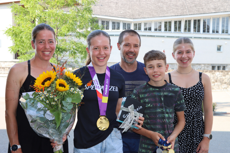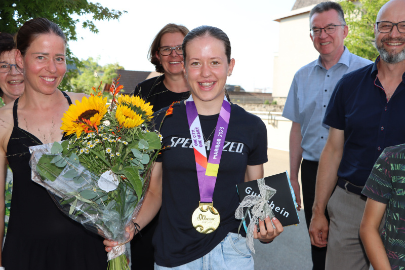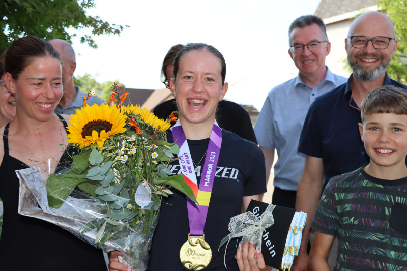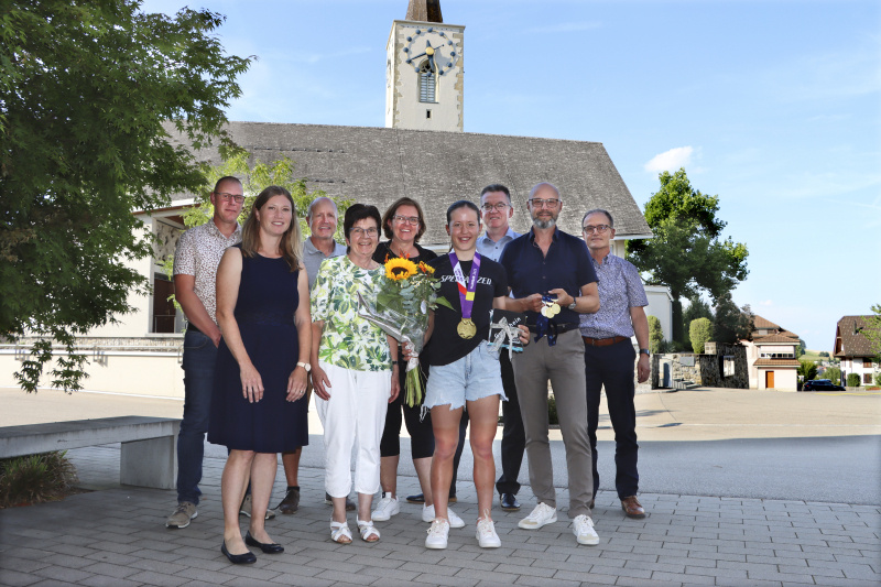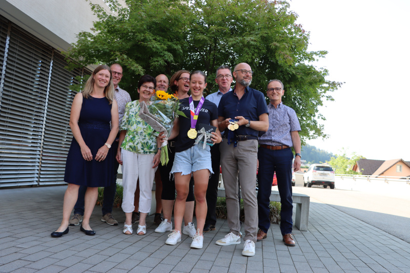 Begleitet von ihren Eltern Martin und Barbara Grossmann sowie der älteren Schwester Lara und dem jüngeren Bruder Iouri, der auch bereits U13-Rennen fährt, sprach Anja frei von der Leber weg über ihre Leidenschaft, ihren Ehrgeiz, ihre klaren Ziele. Auch über Ernährung, Familie, Schule, Lehrbeginn, Trainingszeiten und «Pausenzwang» unterhielt man sich bei einem kleinen Apéro bestens, wobei das Staunen eindeutig auf Seiten der Gemeindevertretung blieb. «Erholung ist für sie, mit 160 Puls zu fahren» erklärte Vater und Trainingspartner Martin, und der Gemeindepräsident Adrian Häfeli meinte dazu: «Ich fahre auch gerne, aber nur mit Motor drunter.» Und Nicole Müller anerkennend: «Wer kennt schon eine Olympiasiegerin persönlich?» Ruth Künzli brachte es auf den Punkt: «Anja, es ist für uns eine grosse Ehre. Du trägst den Namen der Gemeinde in die Welt hinaus.» Anja Grossmanns weiteren Ziele? SM- und EM-Titelverteidigung natürlich, und bei der Nennung des Fernziels «WM 2025» vibrierte in ihrer Stimme ein schimmernder Ehrgeiz mit. Bleiben wir mal gespannt.