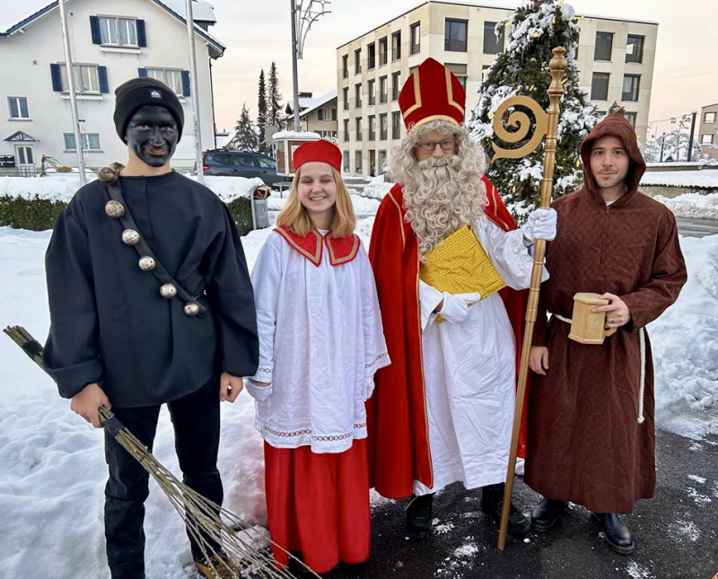 Nach dem feierlichen Einzug am Samstag mit den Rainer Trychlern und der gemütlichen Schmutzlibar, die ein grosser Erfolg war, ist der Samichlaus mit seinem Gefolge seit Sonntag bis am Mittwoch zu den Familien unterwegs und sorgt für leuchtende Kinderaugen. Schmutzlis, die leidenschaftlich Brämi verteilen, mit Gaben schwerbeladene Dienerinnen, der imposante Chlaus und der Knecht Ruprecht waren denn auch startklar für die Besuche bei den Familien, wo sie sehnlich erwartet wurden. Nach den Besuchen gab es manche Episode und Anekdote zu erzählen. So sagte etwa ein kecker Siebenjähriger auf die Frage, was er mal werden wolle: «Ich werde mal Bundesrat!» Für eine echte Jugendvertretung wäre also endlich gesorgt...