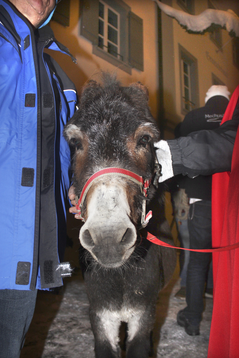 Es war auch dieses Jahr wundervoll stimmig beim umsichtig organisierten Einzug mit Chlaus-Beizli und vielen Leuten auf dem Rundgang des «Adventsfunkelns». Die Schulkinder sangen ihre gut geübten Samichlauslieder, und Eseli Jack (24) aus Gonzbu, auch liebevoll Grauöhrli genannt, war gar nicht bockig, sondern einfach zufrieden.